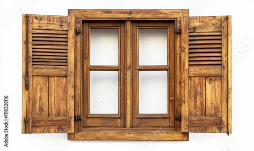 Wooden window with open shutters, rustic.