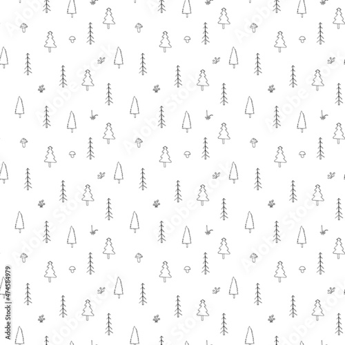 Woodland Seamless pattern, Forest background. Cute cartoon trees and plants vector illustration