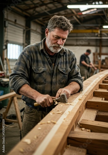 Woodworker Shaping Boat Hull