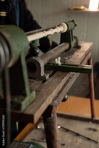 Woodworking lathe in the process of working