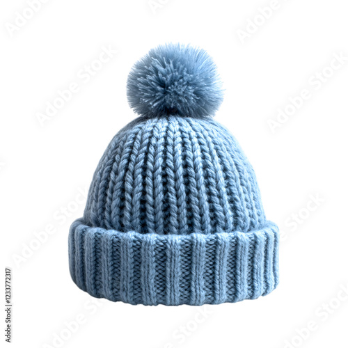 Woolen Beanie in Pale Blue with Pom-Pom Isolated on Transparent Background