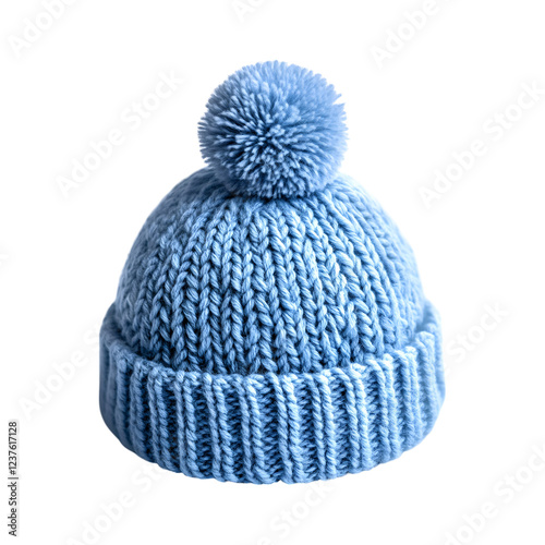 Woolen Beanie in Pale Blue with Pom-Pom Isolated on Transparent Background