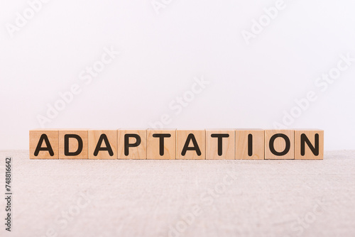 Word ADAPTATION is written on wooden blocks on a light background.