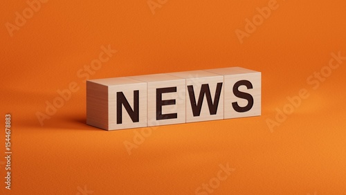 word concept - News. Minimalist Abstract Design With close up of wooden cubes,Business Concept. 3D rendering on orange background.