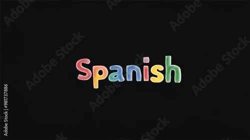 Word or title of "Spanish" lettering drawn with colorfull chalk on black background, idea for school learning process