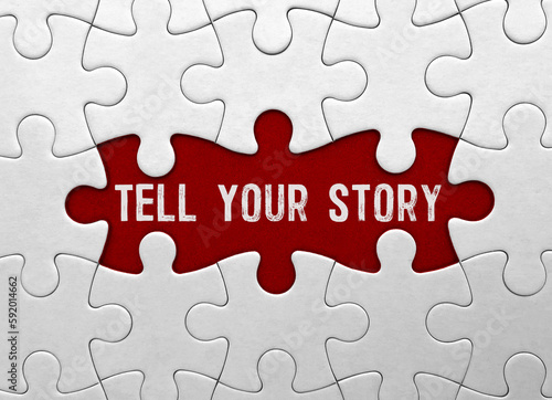 Word Tell Your Story on red puzzle background