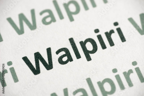 word Walpiri language printed on paper macro
