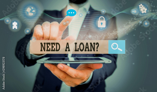 Word writing text Need A Loan Question. Business photo showcasing asking he need money expected paid back with interest Picture photo system network scheme modern technology smart device