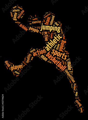 Words illustration of basketball player over black background