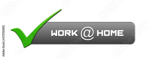 WORK at HOME lettering on grey banner with a green OK sign on the left - isolated on white background - 3D illustration