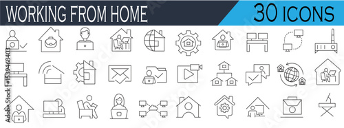 Work From Home Icons – Remote Office, Telecommuting, Digital Workspace, Online Job Symbols