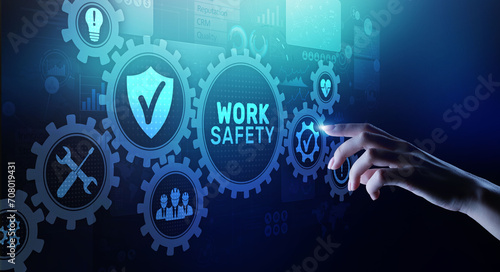 Work safety instruction standards law insurance industrial technology and regulation concept.