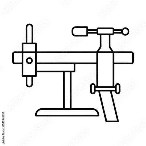 Workbench with vise and wood clamps clean line scene Vector illustration