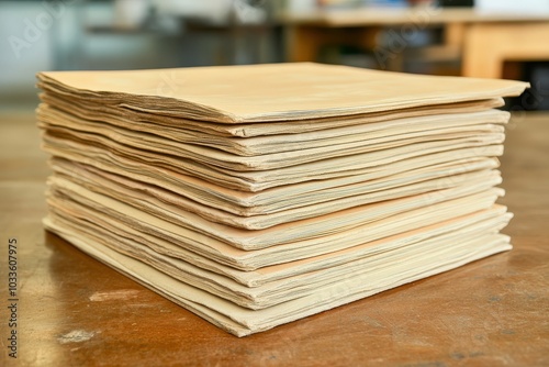 Workbooks Stack: Binded Books for Bonded Education. Table Background in Wooden Office