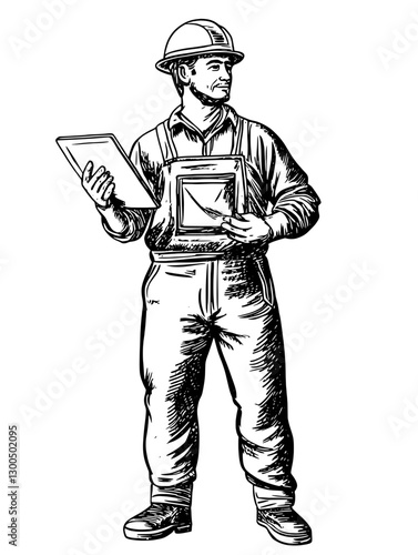 Worker holding blueprints and measuring tools on a construction site during daylight hours