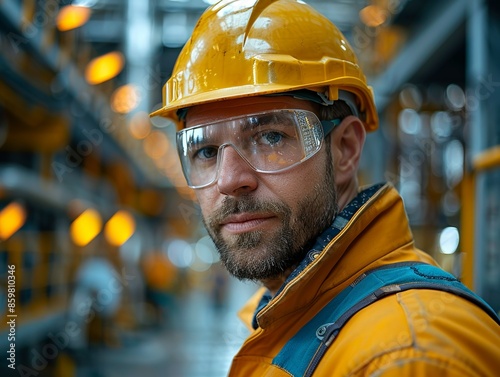 Worker in an oil refinery conducting inspections. Safety protocols, industrial setting. Engineering and manufacturing. Minimalism,