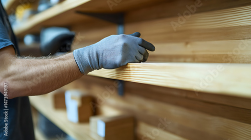Worker Inspecting Wooden Planks in a Workshop
