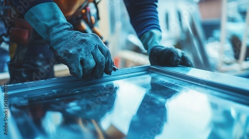 Worker Installing a Glass Panel in a Manufacturing Environment