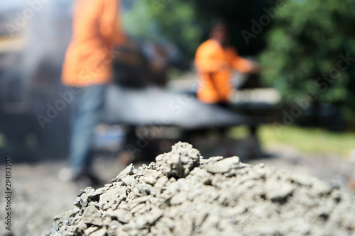 Workers are mixing hot stone caused by burning. Mixed with high temperature asphalt In order to repair the road (blurred images)