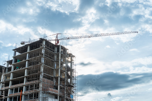workers are working on large construction sites and many cranes are construction of building with blue sky background, Industry new building business.