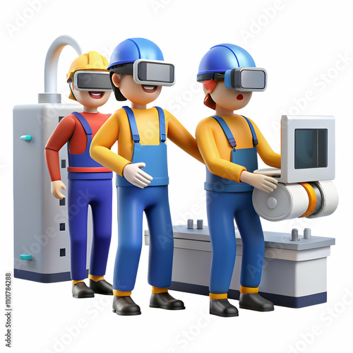 Workers Using VR Headsets in Manufacturing Plant for Training and Simulation