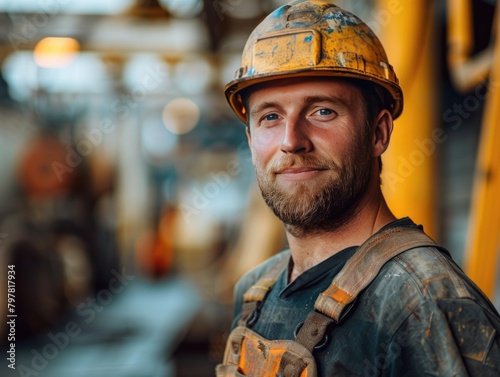 Workers wearing safety helmets in the steel plant workshop