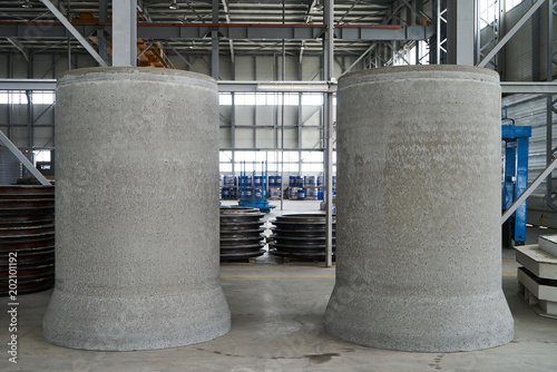 Working process for the manufacture of concrete pipes in a cement factory. Heavy industry concept