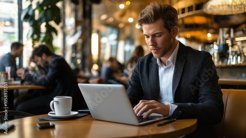 working with a laptop in a modern cafe