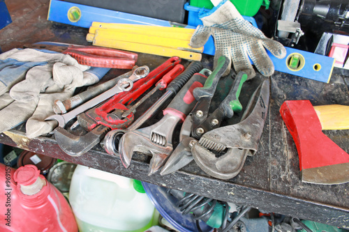 Workshop scene. Tools on the table