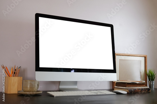Workspace desk and laptop. copy space and blank screen. Business image, Blank screen laptop and supplies.