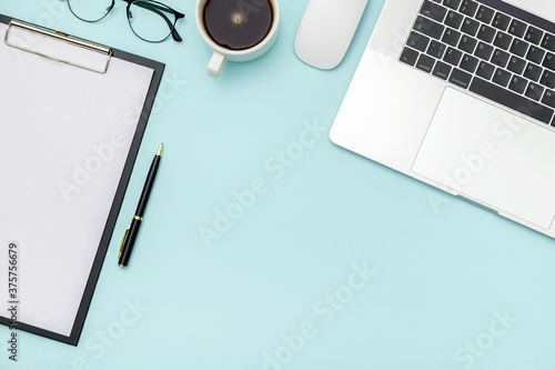Workspace on color desk in home office