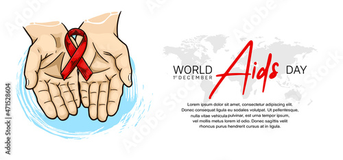World AIDS Day with hand holding red ribbon hand drawn style. Vector can be use for poster, campaign and banner