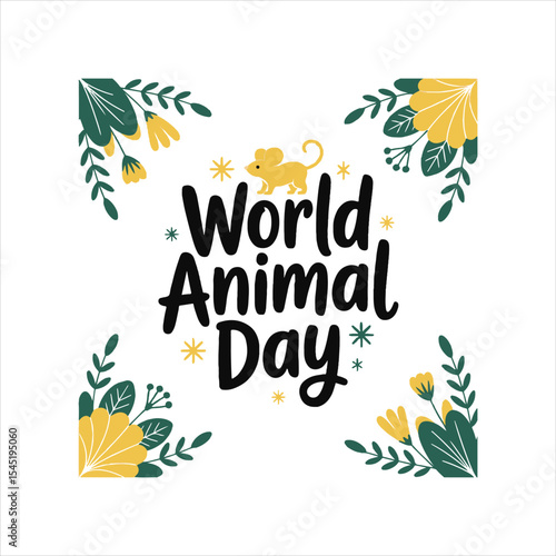 World Animal Day Vector Illustration, Animal Day Celebration Typography Design, World Animal Day Lettering with Nature Elements, Animal Awareness Day Poster Design, Animal Day Banner with Decorative F