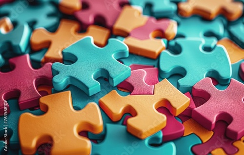 World Autism Awareness Day. Red and yellow, blue puzzles In a blue background. The concept of awareness of autistic disorders. A horizontal banner with a place for text.