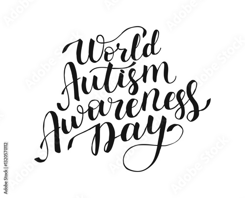 World Autism Awareness Day text banner handwriting in black color. Hand drawn calligraphy lettering on white background.