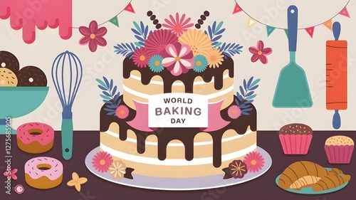 World Baking Day Background Wallpaper Featuring Delicious Pastries, Cakes, and Baking Tools to Celebrate the Joy of Baking and Culinary Creativity