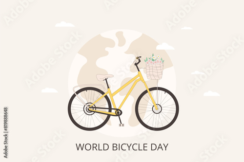 World bicycle day template. Global sport and healthy life holiday greeting card. bike background. Vector illustration.
