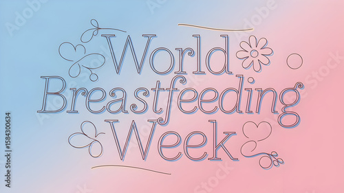 World Breastfeeding Week Text with Symbolic Curves Hearts and Floral Vines on Pastel Gradient Background