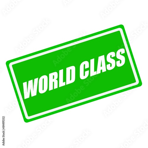 World class white stamp text on green background