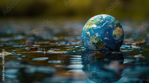 World environment and earth day concept with blue globe and eco friendly enviroment, sink in water