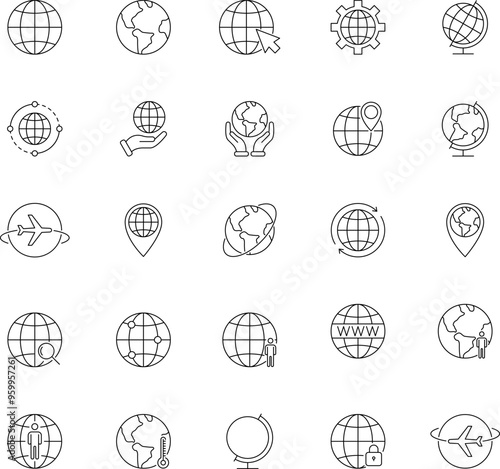 World globe line icon. Vector Earth global country map sign. Travel internet globe vector collection.