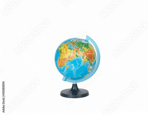 World globe on a stand. Africa, Europe, Asia visible. Bright colors