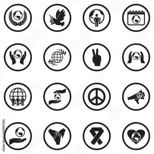 World Love Icons. Black Flat Design In Circle. Vector Illustration.