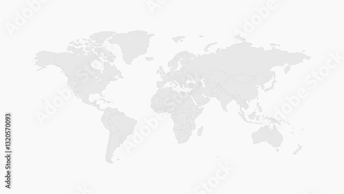 World map Grayscale. Grey silhouette isolated on white background for website layouts, background, education. Travel worldwide backdrop. Earth geography.
