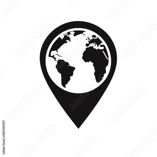 World Map Pin Pointer Location Icon Black Minimalist Design Continent Earth Navigation Route Direction