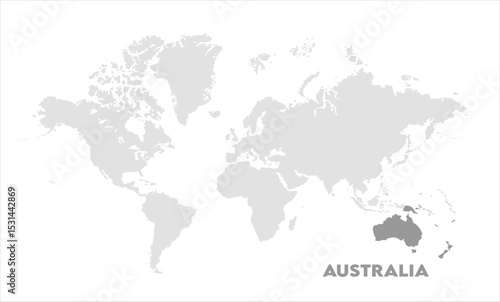 World map with Australia focus-14, Map of Australia, highlighted on the world map, Australia on the world map, Satellite view, Australia location on the globe.