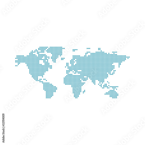 World map with blue circles vector illustration on white background