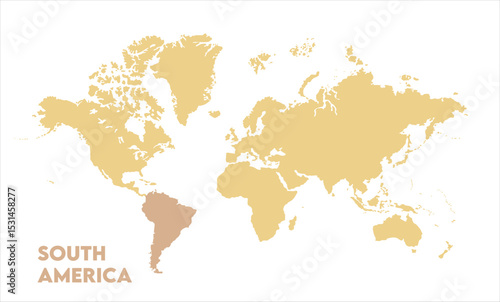 World map with South America focus-02, Map of South America, highlighted on the world map, South America on the world map, Satellite view, South America's location on the globe.