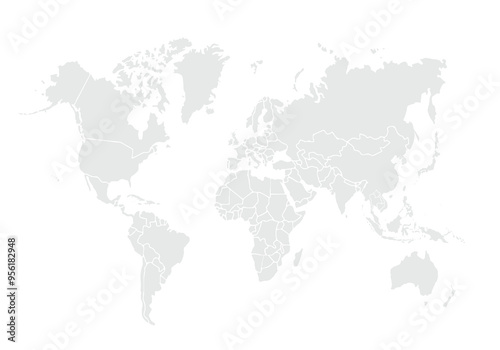World map.United States, China, Russia, Germany, United Kingdom, Japan, France, India, Brazil, Canada, Italy. Grayscale,isolated on white background