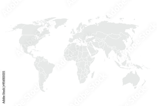 World map.United States, China, Russia, Germany, United Kingdom, Japan, France, India, Brazil, Canada, Italy. Grayscale,isolated on white background